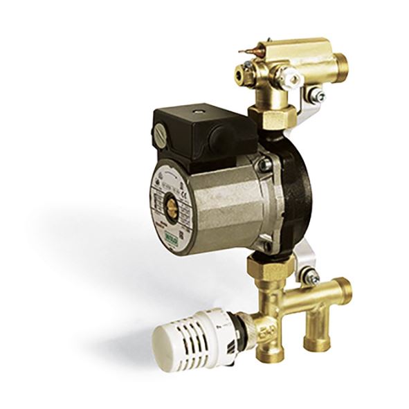 z termostatického ventilu s čidlem a jímkou (rozsah nastavení 20-70 °C), oběhového