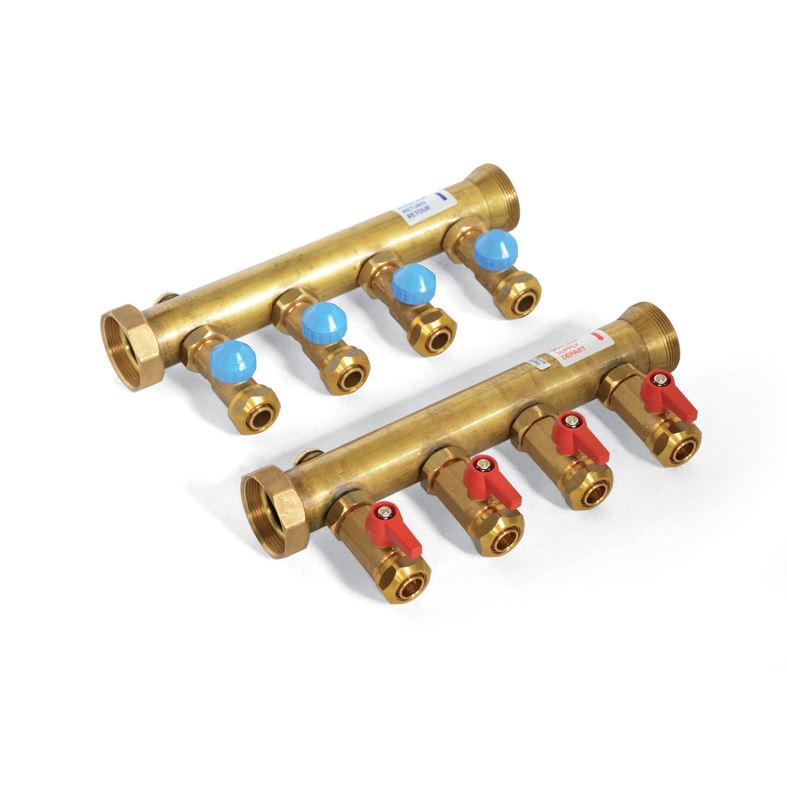 Rozdělovače 1 1/2“ pro průmyslové použití podlahového vytápění s uzavíracími kohouty