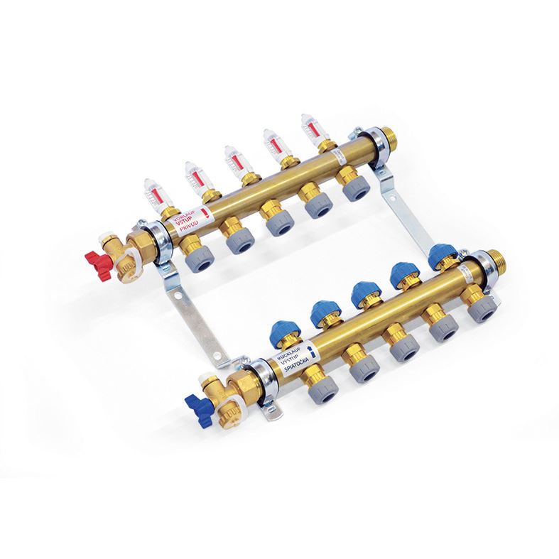 Rozdělovač pro podlahové vytápění (mosaz) s násuvnými spojkami pro trubky 15 × 1,5 mm