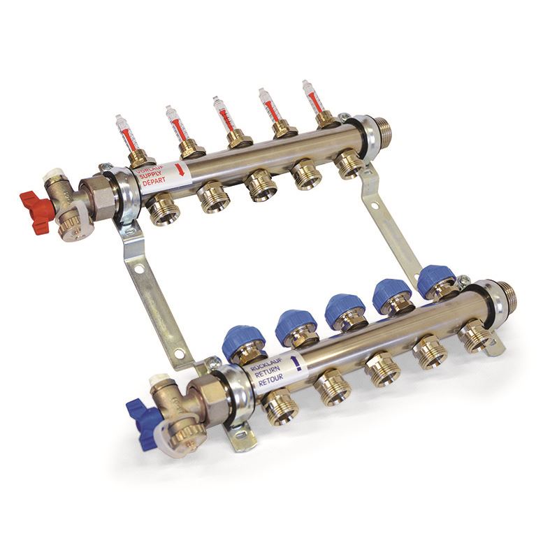 Rozdělovač pro systémy podlahového vytápění (nerez)