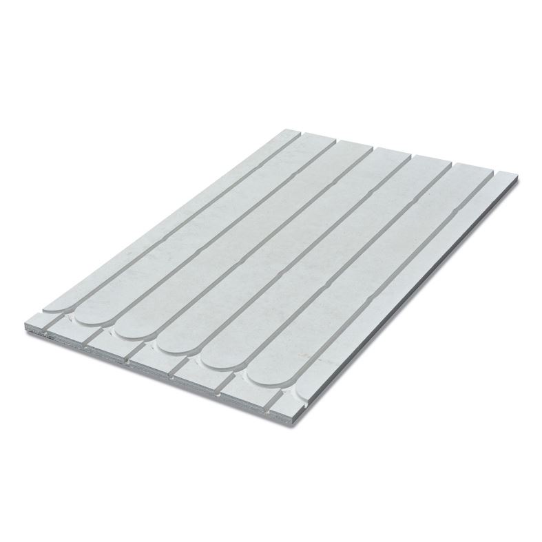 KB 12 sádrovláknitá systémová deska tloušťky 18 mm s drážkami pro uložení trubky 12 x 1,3 mm, jen pro přímé rozvody, rozměr 1000 x 620 mm.