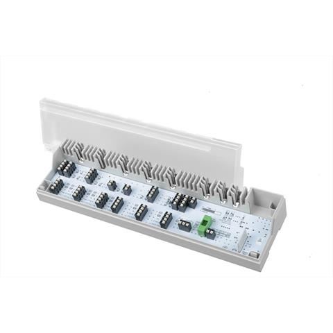 k jednoduchému propojení prostorových termostatů řady Alpha a elektrotermických pohonů, napájení 230 V, pro 6 prostorových termostatů a 15 elektrotermických pohonů, Druh ochrany IP 20, třída ochrany II, možnost spínání zdroje tepla a oběhového čerpadla.