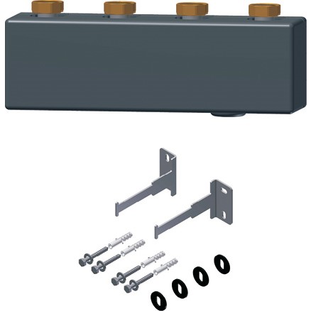 Pro 2 čerpadlové skupiny DN 25 a DN 32, nahoře s převlečnými maticemi s plochým těsněním, dole se závitem 6/4´´ s plochým těsněním, tepelná izolace z EPP s pěkným designem.